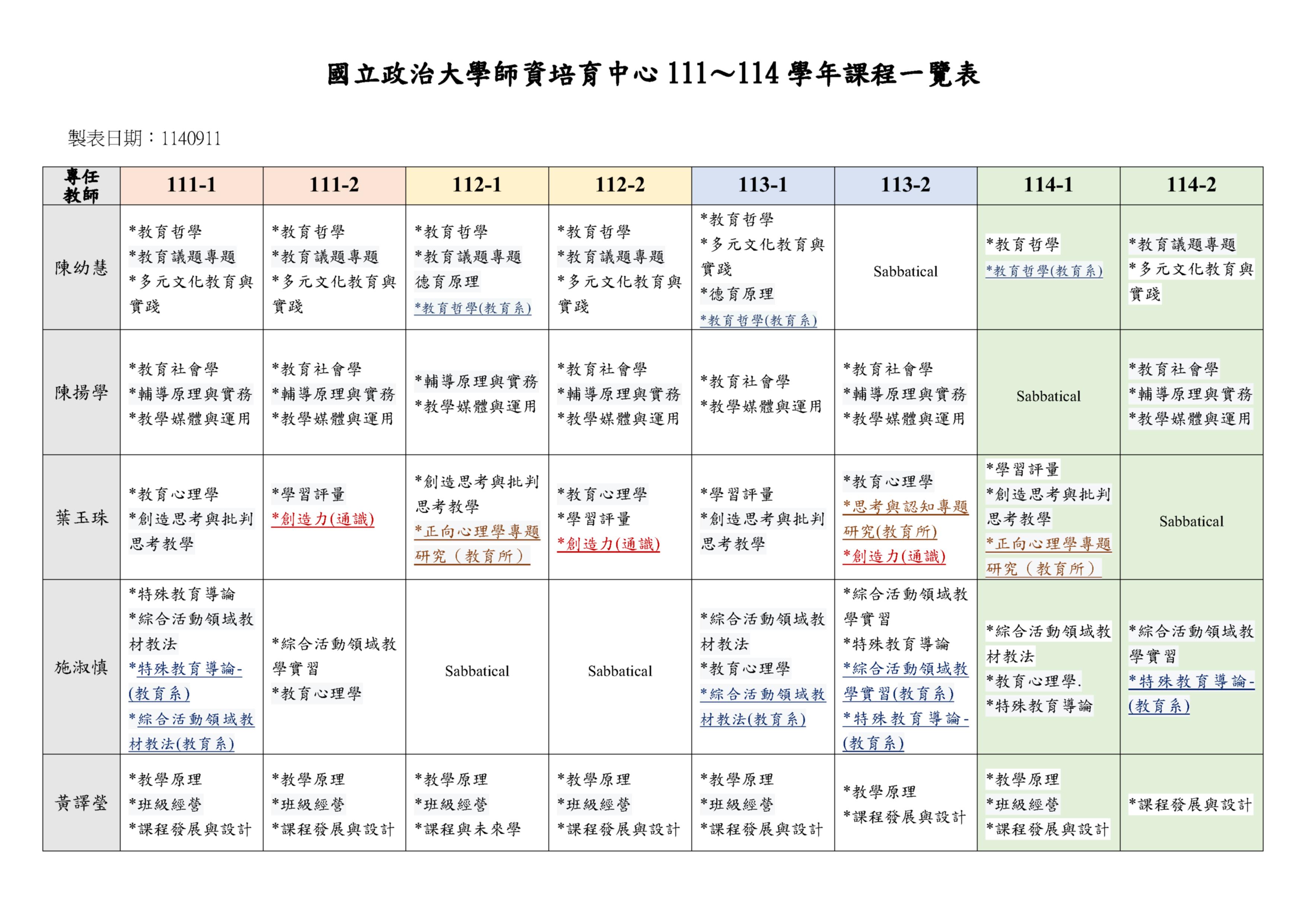 (註:113-1葉玉珠老師没有開創造力通識課)